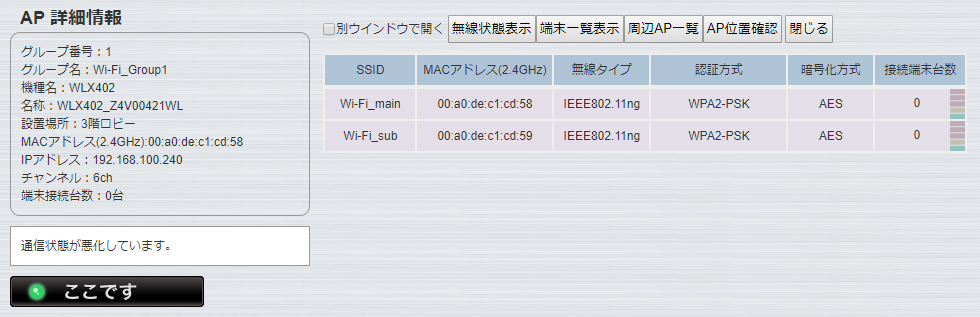 グループ化された全APの状態を、一画面で表示します。