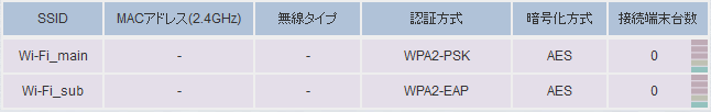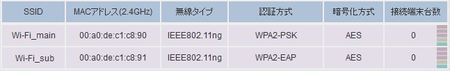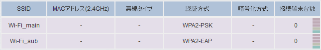接続端末がある場合のみSSID情報が表示されます。