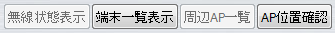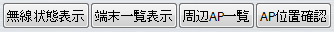 「無線状態表示」「端末一覧表示」「周辺 AP 一覧」「AP位置確認」のボタンを押すと
