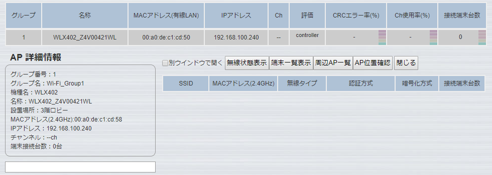 ※本機能は、WLX402がController-APとして動作しているときのみ使用できます。