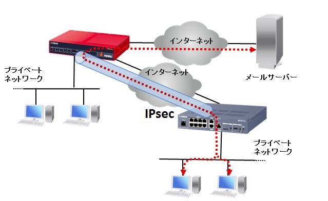 | (4) | VPN先の機器のLAN配下にある端末からトンネルインターフェースを経由する通信で、その通信が(1)で指定したアプリケーションの場合、静的に通過させるように変更します。 |