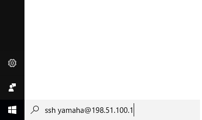 [スタート]メニューから「ssh yamaha@198.51.100.1」と入力します。