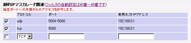 | ・ | プロトコル : UDP | ポート : 5004-5060 | 使用ホストIPアドレス : ネットボランチのローカルアドレス |