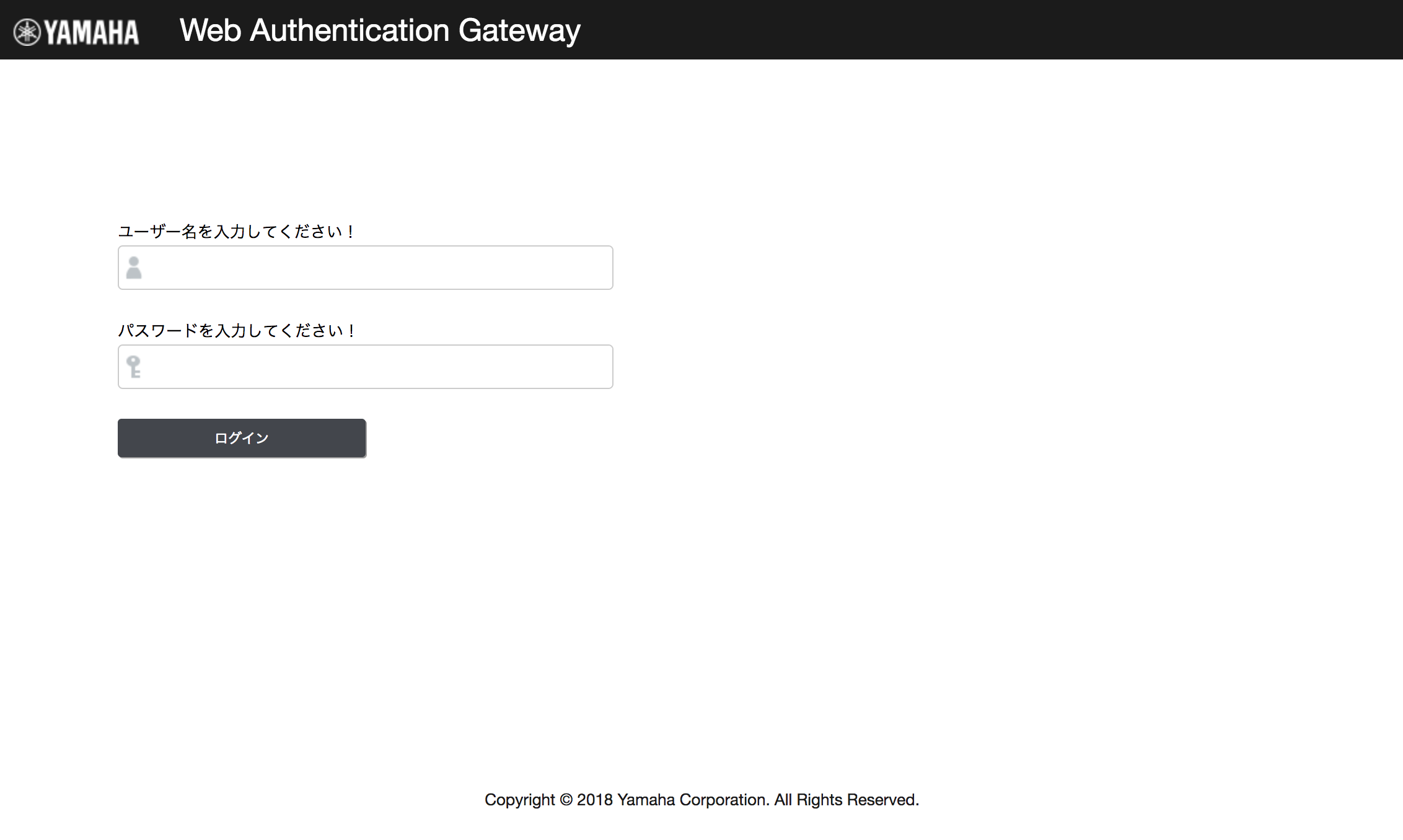 サプリカントのWebブラウザからIPv4 TCP80番ポート宛のアクセスが行われたとき、以下のような認証画面を表示します。