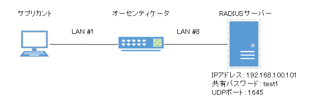 本製品は、サプリカントとはEAP over LAN、RADIUSサーバーとはEAP over RADIUSを使用して通信を行う