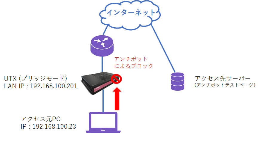 ※ UTX配下で接続するとアンチボットが動作して接続をブロックします。セキュリティーレポートの検知数にも反映されますので、実際に接続される際はご注意ください。