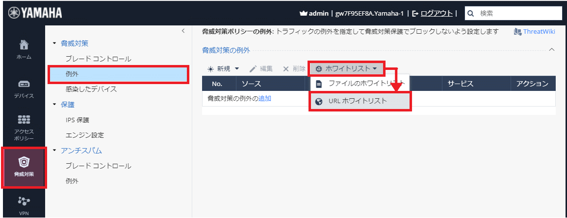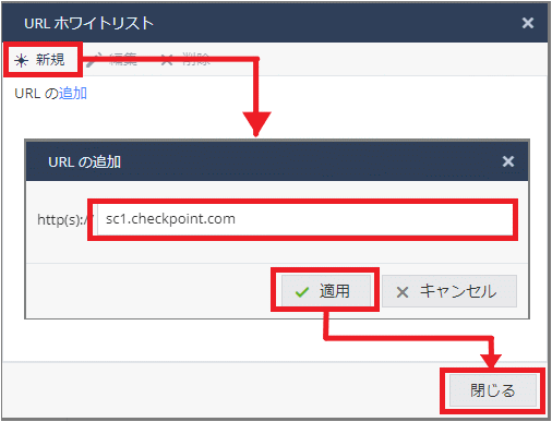 URLを例外として登録する方法です。特定のウェブサイトとの通信をまとめて許可したい場合に有効です。