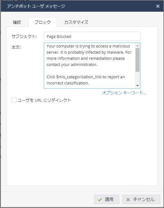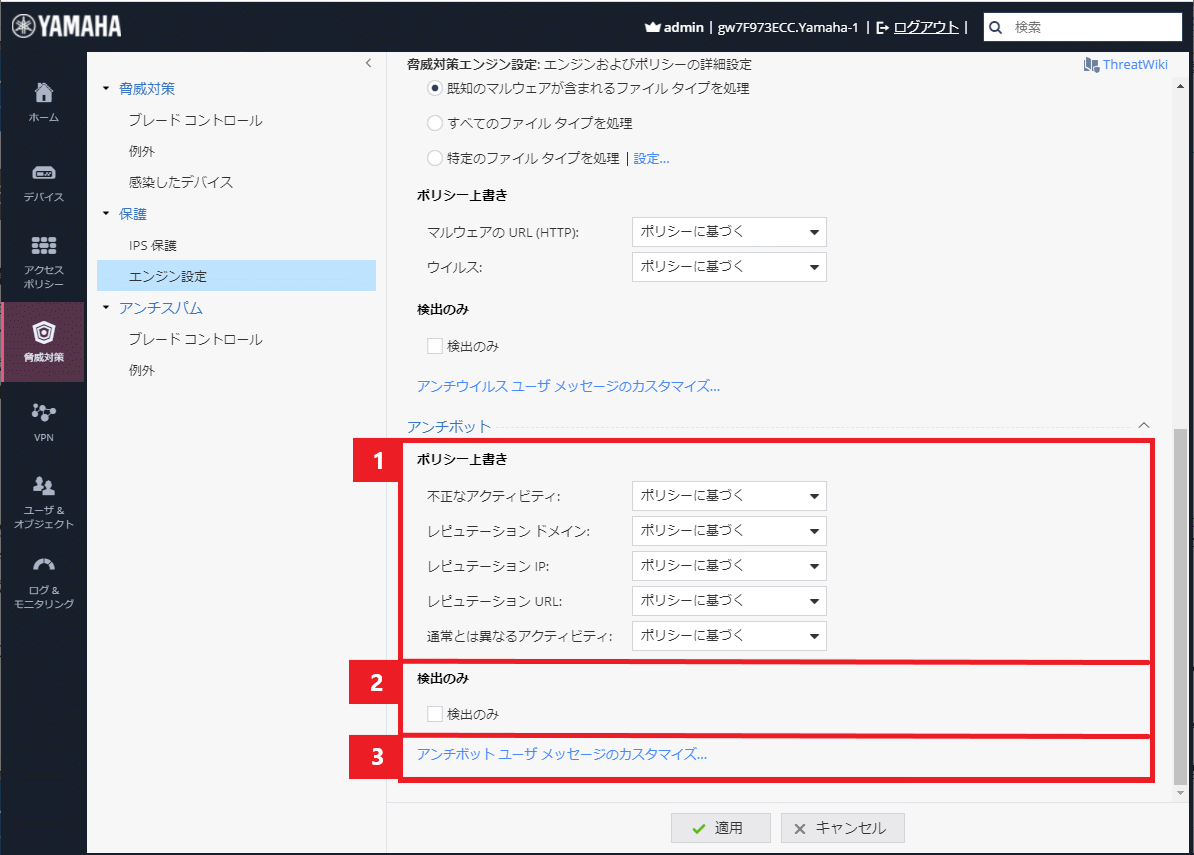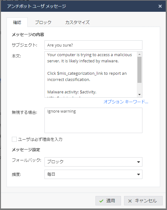 ※ この設定はアンチウイルス機能とアンチボット機能の両方に影響します。