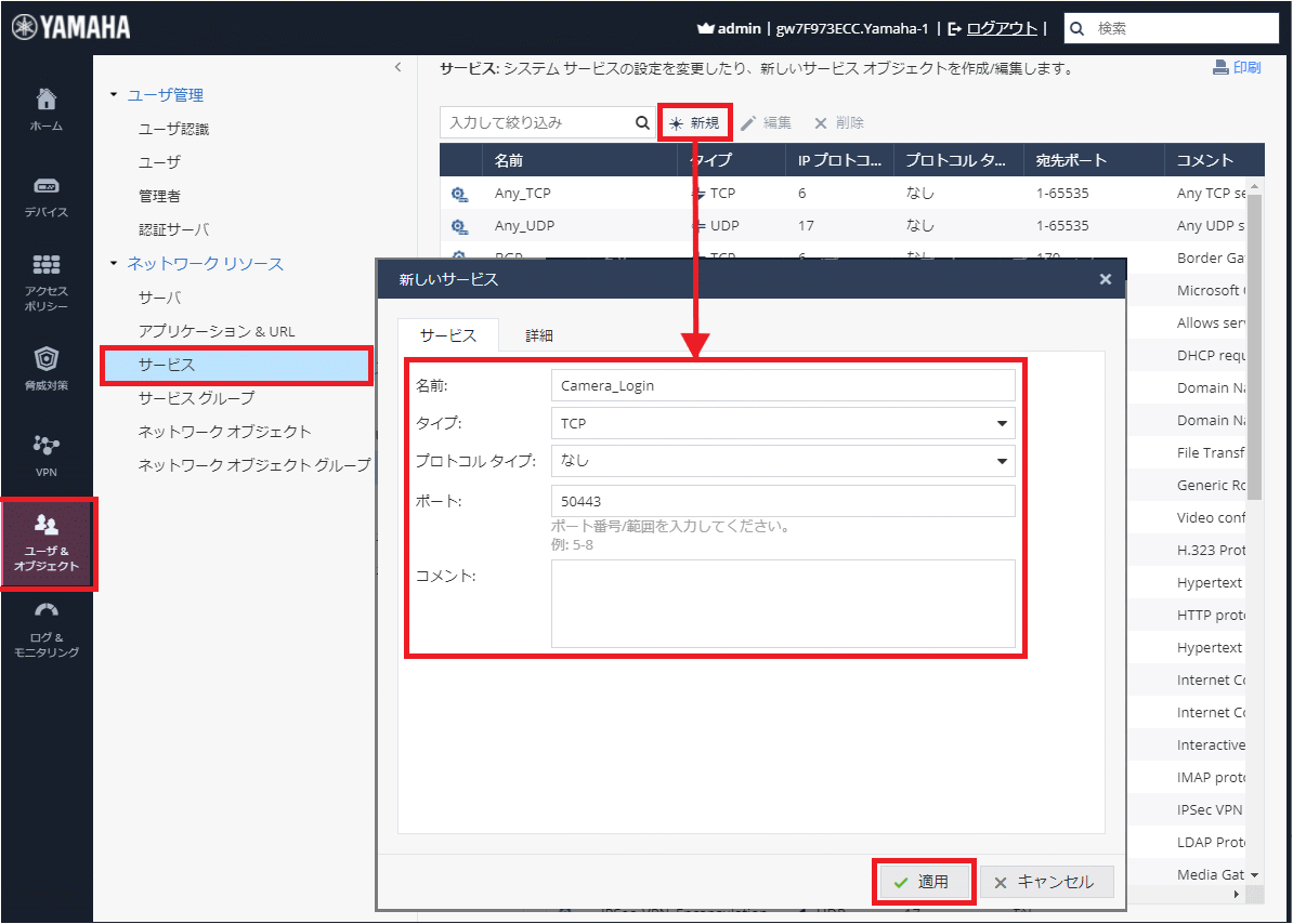 「サービス」には、あらかじめ HTTP や HTTPS といった主要なプロトコルが登録されています。手動でポート番号を指定したい場合、以下の方法で登録することが可能です。