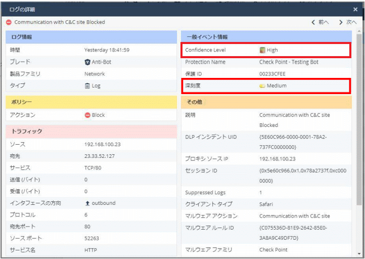アンチウイルスやアンチボットのログには「Confidence Level」と「深刻度」という項目があります。どちらも検知した脅威の程度を表す指標ですが、それぞれが持つ意味は異なります。