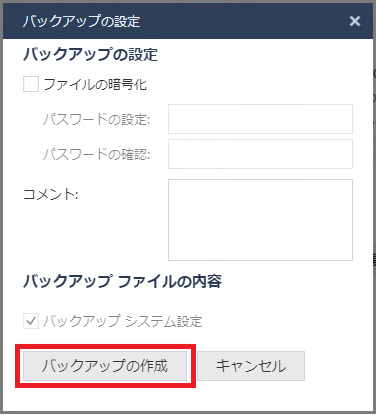 以下の手順でバックアップファイルを生成できます。