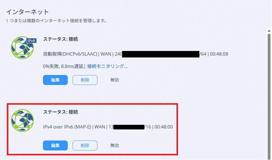 ※ 複数のネットワークがある場合、IPv6 でインターネット接続を行いたいインターフェースを1つだけ選択して運用してください