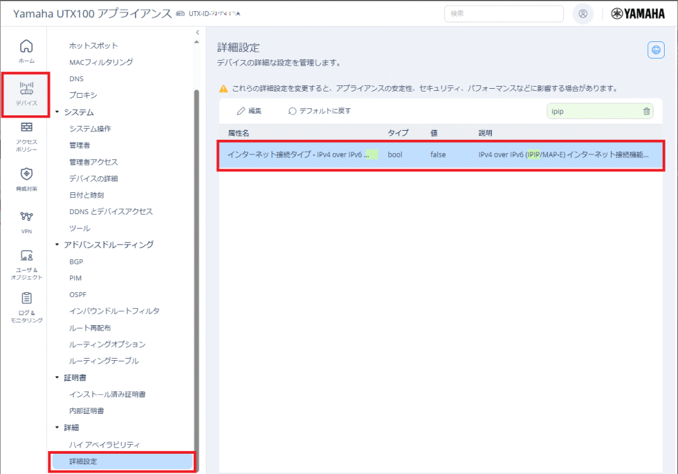 また、MAP-Eによるインターネット接続が正常にできない時に、MAPテーブルのクリア(※)操作を行うことが可能です。MAPテーブルのクリア操作は、原則としてサポート窓口から指示があった時のみ実施してください。