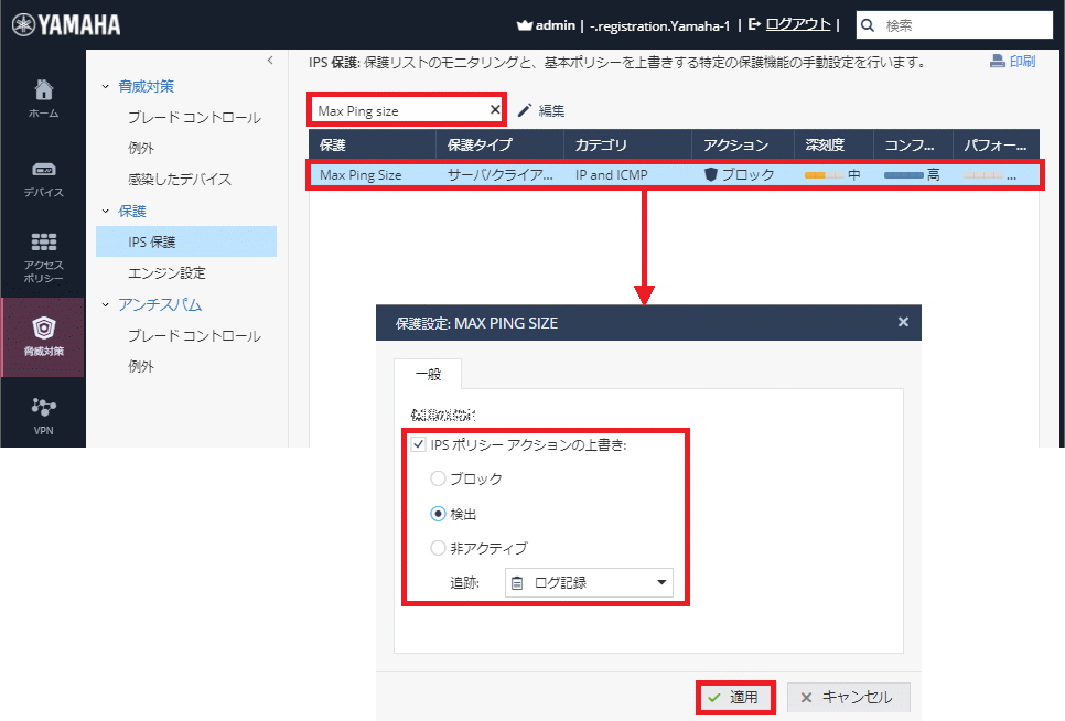 指定したIPS保護を検知した際の処理内容を変更する方法です。