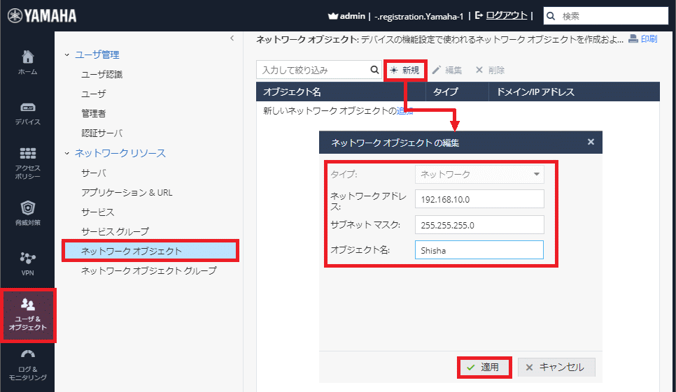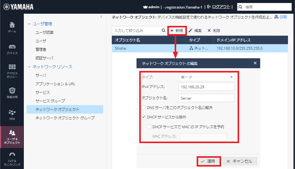 | 宛先 | 登録した宛先のオブジェクト (Server) |