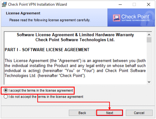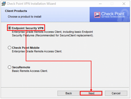 - 「Endpoint Security VPN」にチェックが入っていることを確認し、【Next】をクリックします