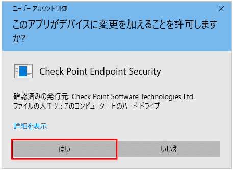 - 「ユーザーアカウント制御」の確認画面が表示される場合は【はい】をクリックします