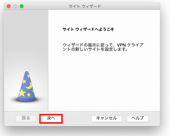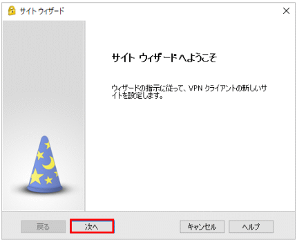 - サイトウィザードが起動しますので、【次へ】をクリックします