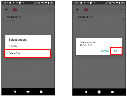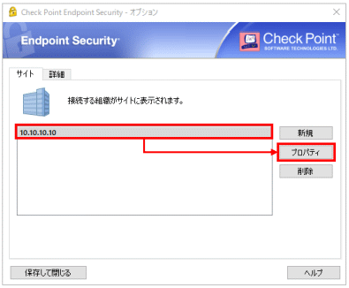 - 【サイト】から登録されているVPNの接続先を選択し、【プロパティ】をクリックします