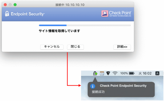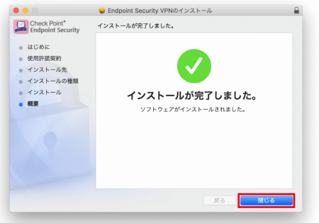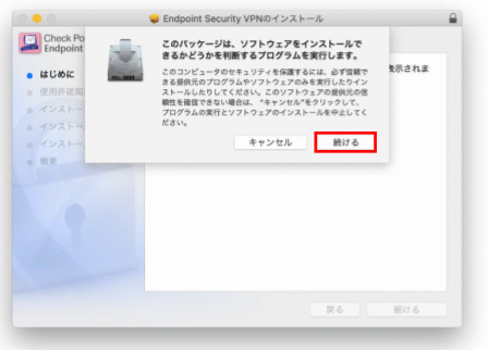 - 再度【Endpoint_Security_VPN.pkg】の実行画面が表示されます
