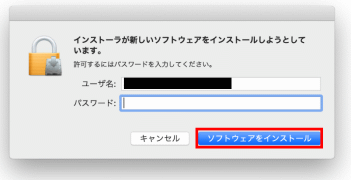 - macOS の管理者ユーザーとパスワードを入力し、インストールを進めます