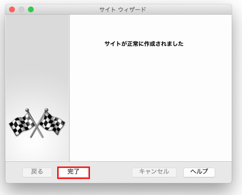- 「サイトが正常に作成されました」と表示されるため、【完了】をクリックします