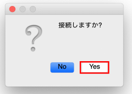 - 前項の作業で【完了】をクリックすると「接続しますか?」のメッセージが表示されるため、【Yes】をクリックします