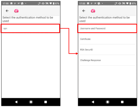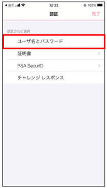 - 「認証方式の選択」で【ユーザ名とパスワード】をタップします