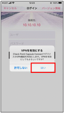 - 「VPNを有効にする」確認メッセージが表示されるため、【はい】をタップします