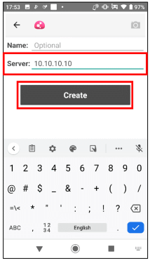 - 【Server】に接続先の「静的 IP」 または 「DDNS」を入力し、【Create】をタップします