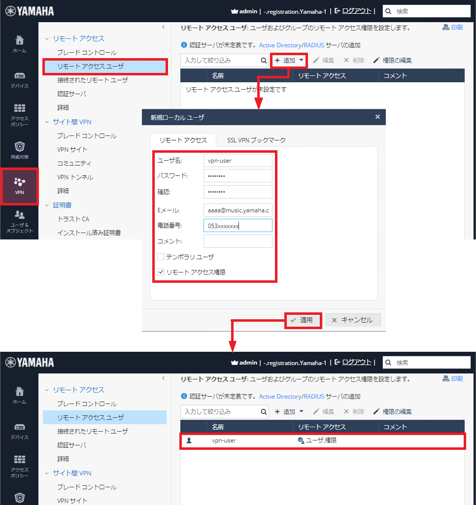 1-3. 「リモートアクセスユーザ」の設定