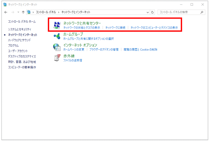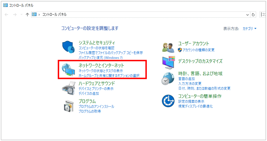 - コントロールパネルの【ネットワークとインターネット】をクリックします