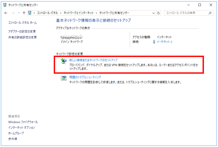 - 【新しい接続またはネットワークのセットアップ】をクリックします