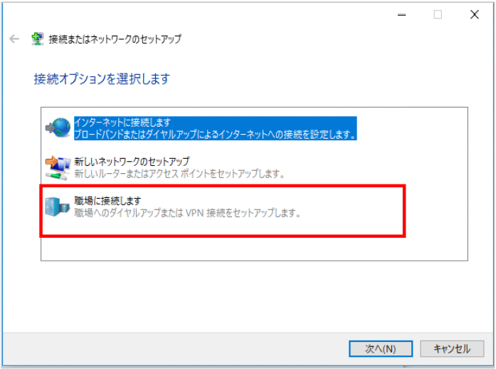 - 【職場に接続します】を選択後【次へ】をクリックします