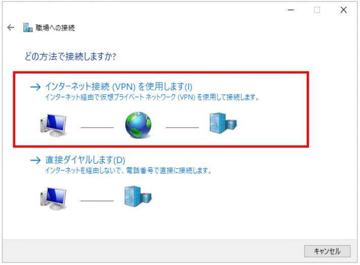 - 【インターネット接続(VPN)を使用します】を選択します