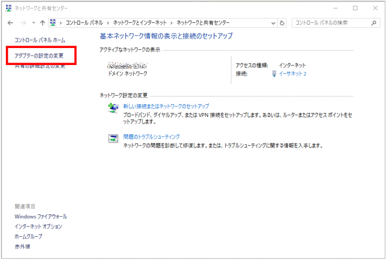 - 【ネットワークと共有センター】をクリックします