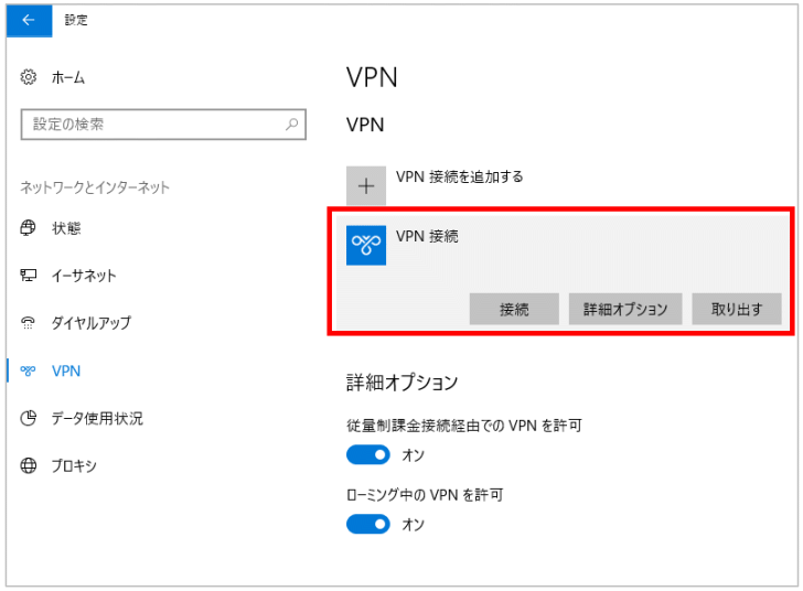 以上でVPN接続の設定は完了です。