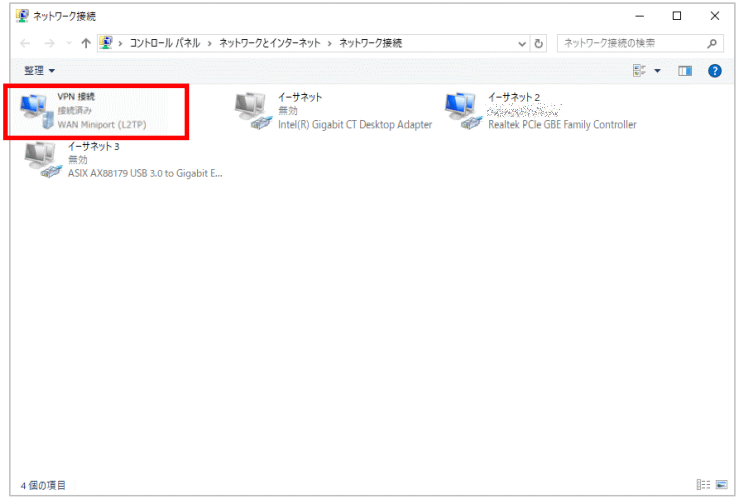 - 【VPN 接続】のアイコンが【接続済み】にステータスが変わったら、L2TP 接続は完了です