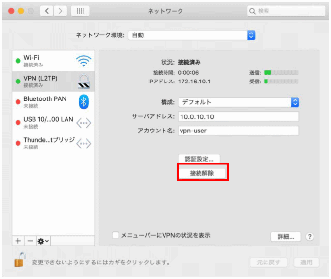 - VPN の【接続解除】をクリックします