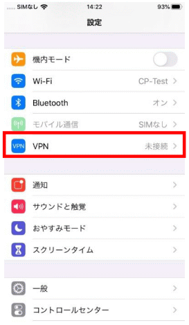 - 【設定】の【VPN】メニューを開きます