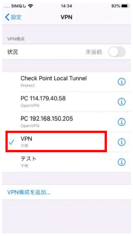 - VPN の名前をタップし、チェックマークを入れます