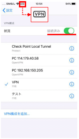 4-5. 画面上部に「VPN」と表示されない場合の確認方法