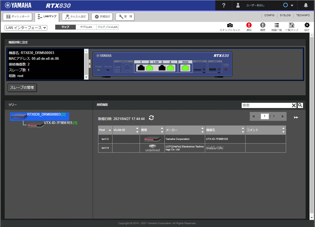 UTXをヤマハルーターのLANマップで管理するためには「2. 使用上の制限」の条件を満たしておく必要があります。