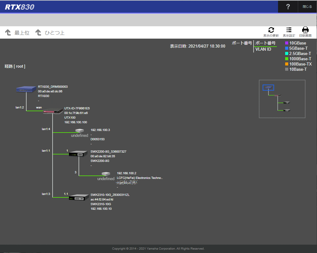 ※ SWXシリーズのLANマップやYamaha LAN Monitorは対応していません。
