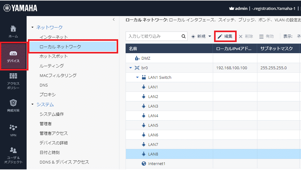※ 今回の例ではLAN8ポートをリダイレクトポートに使用する設定にしています
