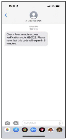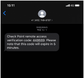 - 「2-5. SMS / E-mail認証をユーザー選択できるようにする」で「パスコードの送信先 (SMS/Eメール) の選択」を有効にしている場合は、VPNのID/パスワード認証を行うと、以下の画像のようなメッセージが表示されます。