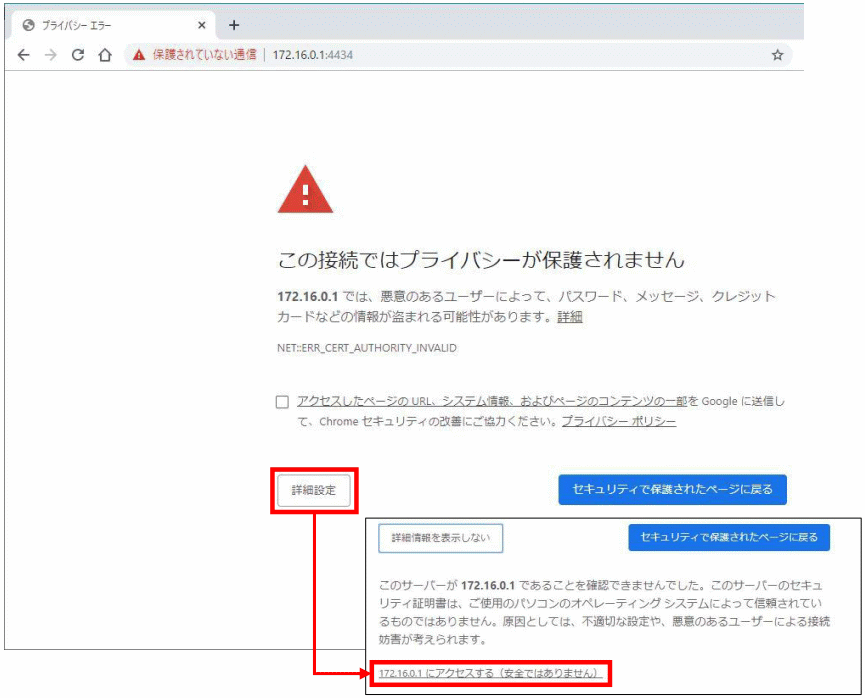 - 「*.*.*.*にアクセスする(安全ではありません)」をクリックします