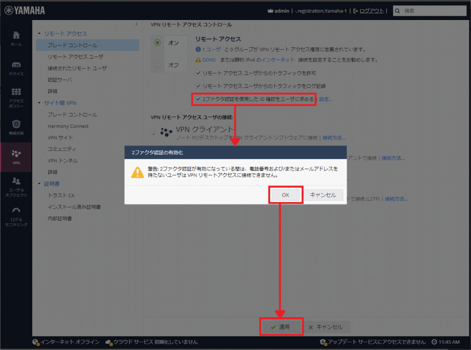 リモートアクセスVPN(IPsec) 2要素認証機能の設定手順