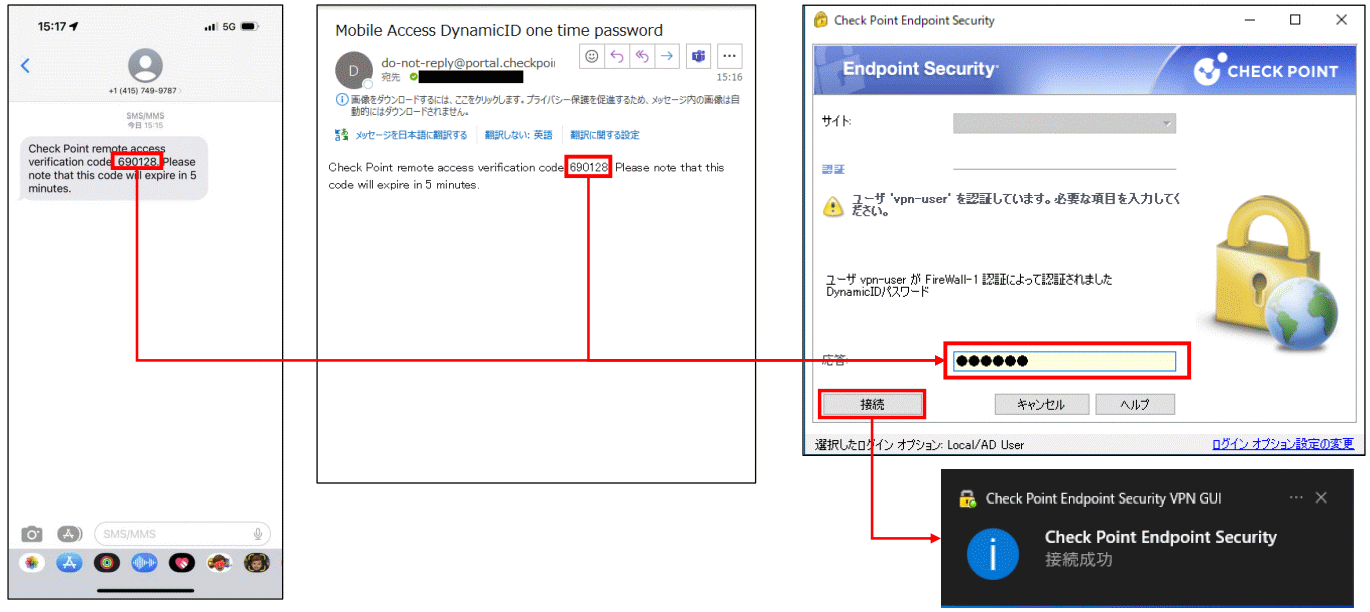 ※ 入力試行回数の上限に達すると、再度VPNユーザのID/パスワードを使ったログインが必要となります |