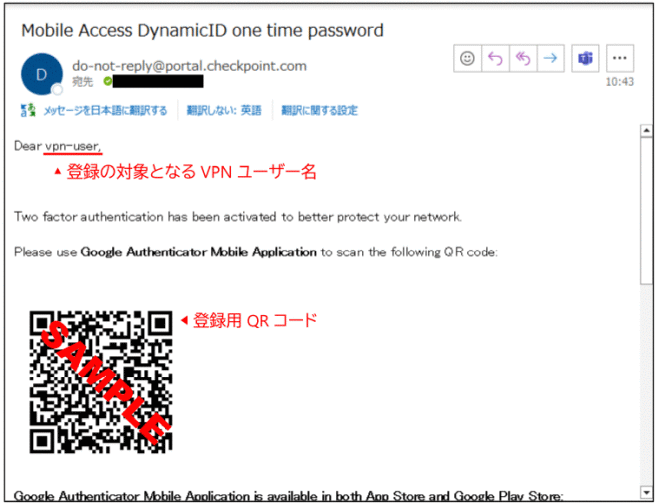 Google Authenticatorで2要素認証を利用する場合、登録用の QR コードは「リモートアクセスユーザ」に設定したメールアドレスに届きます。メールが届くタイミングは以下の通りです。